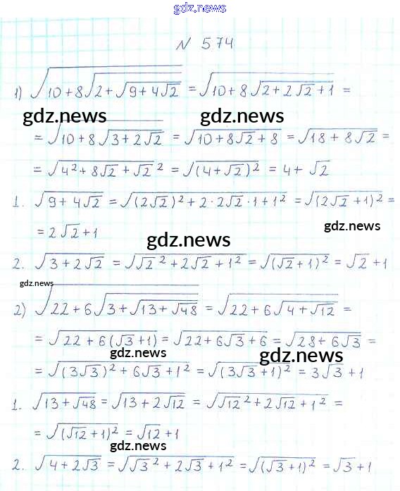 Как эффективно готовиться к домашним заданиям по Алгебре за 8 класс: лучшие стратегии и советы на gdz.news. Здесь подготовлен Учебник Мерзляк, Полонский, Якир Алгоритм успеха - §17. Тождественные преобразования выражений, содержащих арифметические квадратные корни 574 и готовые ответы к ним. Сверяй домашку и получай отличные оценки!