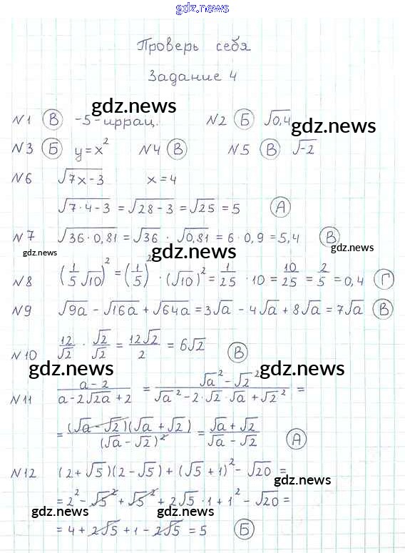 ГДЗ по Алгебре за 8 класс Мерзляк, Полонский Учебник Алгоритм успеха - Проверь себя №4 1