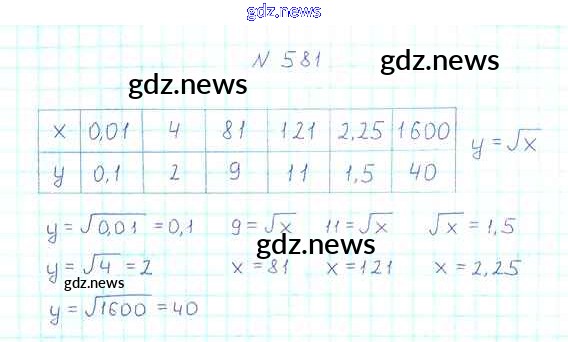 Как эффективно готовиться к домашним заданиям по Алгебре за 8 класс: лучшие стратегии и советы на gdz.news. Здесь подготовлен Учебник Мерзляк, Полонский, Якир Алгоритм успеха - §18. Функция y=√x 581 и готовые ответы к ним. Сверяй домашку и получай отличные оценки!