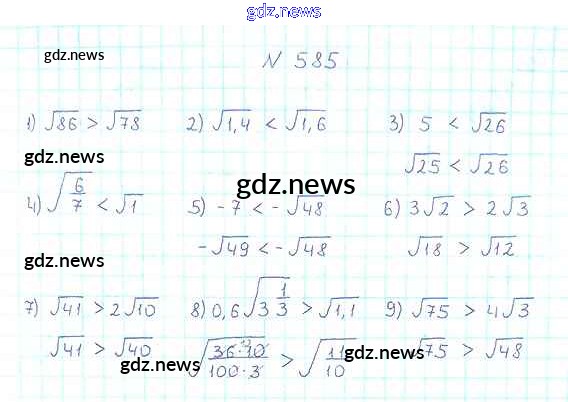 Как эффективно готовиться к домашним заданиям по Алгебре за 8 класс: лучшие стратегии и советы на gdz.news. Здесь подготовлен Учебник Мерзляк, Полонский, Якир Алгоритм успеха - §18. Функция y=√x 585 и готовые ответы к ним. Сверяй домашку и получай отличные оценки!