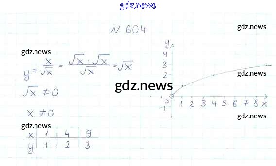 Как эффективно готовиться к домашним заданиям по Алгебре за 8 класс: лучшие стратегии и советы на gdz.news. Здесь подготовлен Учебник Мерзляк, Полонский, Якир Алгоритм успеха - §18. Функция y=√x 604 и готовые ответы к ним. Сверяй домашку и получай отличные оценки!