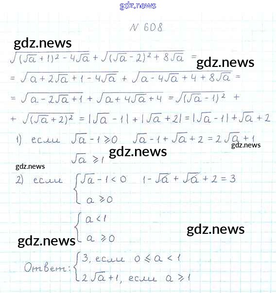Как эффективно готовиться к домашним заданиям по Алгебре за 8 класс: лучшие стратегии и советы на gdz.news. Здесь подготовлен Учебник Мерзляк, Полонский, Якир Алгоритм успеха - §18. Функция y=√x 608 и готовые ответы к ним. Сверяй домашку и получай отличные оценки!