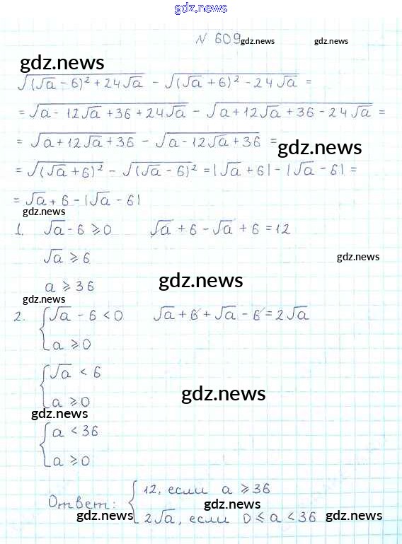 Как эффективно готовиться к домашним заданиям по Алгебре за 8 класс: лучшие стратегии и советы на gdz.news. Здесь подготовлен Учебник Мерзляк, Полонский, Якир Алгоритм успеха - §18. Функция y=√x 609 и готовые ответы к ним. Сверяй домашку и получай отличные оценки!