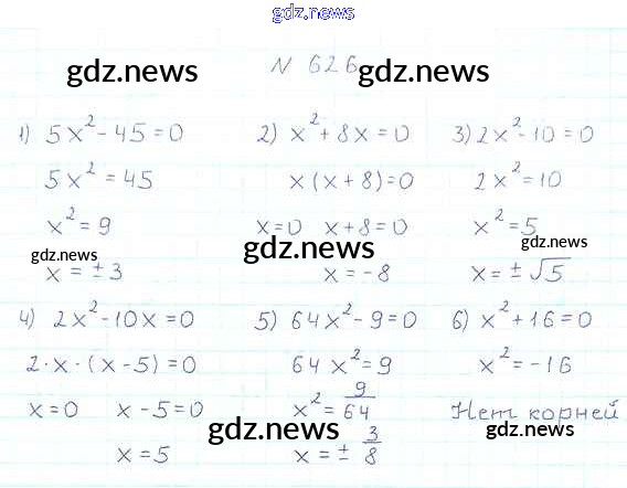 Как эффективно готовиться к домашним заданиям по Алгебре за 8 класс: лучшие стратегии и советы на gdz.news. Здесь подготовлен Учебник Мерзляк, Полонский, Якир Алгоритм успеха - §19. Квадратные уравнения. Решение неполных квадратных уравнений 626 и готовые ответы к ним. Сверяй домашку и получай отличные оценки!