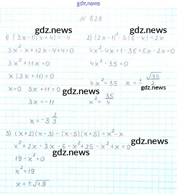 Как эффективно готовиться к домашним заданиям по Алгебре за 8 класс: лучшие стратегии и советы на gdz.news. Здесь подготовлен Учебник Мерзляк, Полонский, Якир Алгоритм успеха - §19. Квадратные уравнения. Решение неполных квадратных уравнений 628 и готовые ответы к ним. Сверяй домашку и получай отличные оценки!