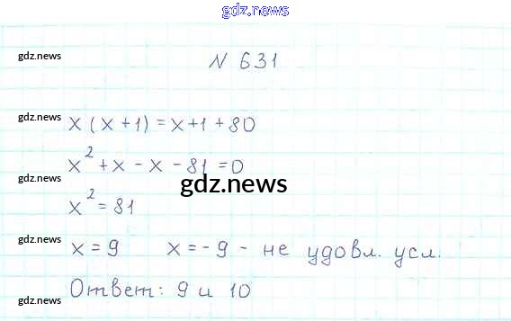 Как эффективно готовиться к домашним заданиям по Алгебре за 8 класс: лучшие стратегии и советы на gdz.news. Здесь подготовлен Учебник Мерзляк, Полонский, Якир Алгоритм успеха - §19. Квадратные уравнения. Решение неполных квадратных уравнений 631 и готовые ответы к ним. Сверяй домашку и получай отличные оценки!