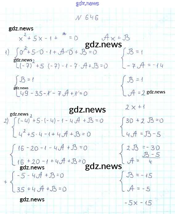 Как эффективно готовиться к домашним заданиям по Алгебре за 8 класс: лучшие стратегии и советы на gdz.news. Здесь подготовлен Учебник Мерзляк, Полонский, Якир Алгоритм успеха - §19. Квадратные уравнения. Решение неполных квадратных уравнений 646 и готовые ответы к ним. Сверяй домашку и получай отличные оценки!