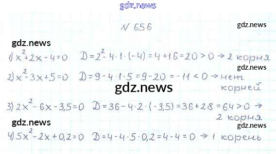 Как эффективно готовиться к домашним заданиям по Алгебре за 8 класс: лучшие стратегии и советы на gdz.news. Здесь подготовлен Учебник Мерзляк, Полонский, Якир Алгоритм успеха - §20. Формула корней квадратного уравнения 656 и готовые ответы к ним. Сверяй домашку и получай отличные оценки!