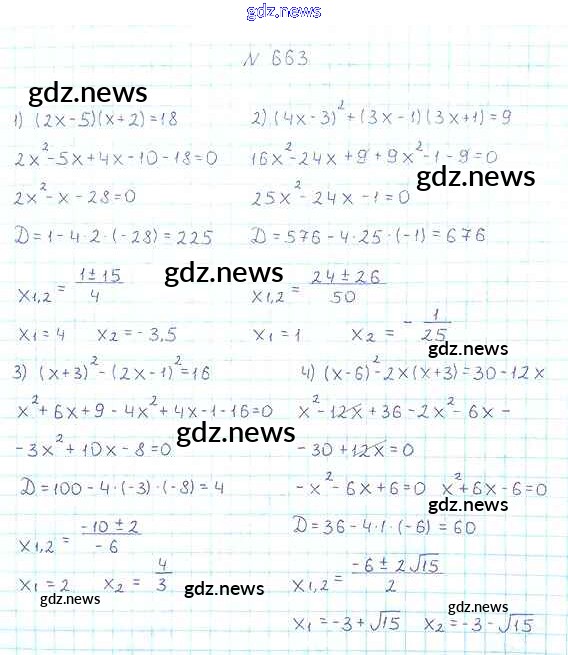 Как эффективно готовиться к домашним заданиям по Алгебре за 8 класс: лучшие стратегии и советы на gdz.news. Здесь подготовлен Учебник Мерзляк, Полонский, Якир Алгоритм успеха - §20. Формула корней квадратного уравнения 663 и готовые ответы к ним. Сверяй домашку и получай отличные оценки!