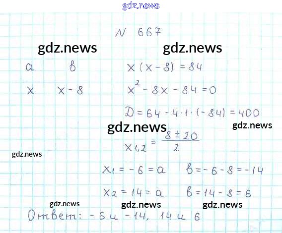 Как эффективно готовиться к домашним заданиям по Алгебре за 8 класс: лучшие стратегии и советы на gdz.news. Здесь подготовлен Учебник Мерзляк, Полонский, Якир Алгоритм успеха - §20. Формула корней квадратного уравнения 667 и готовые ответы к ним. Сверяй домашку и получай отличные оценки!