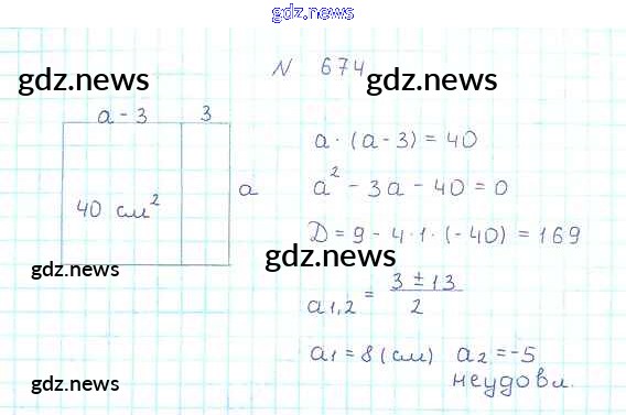 Как эффективно готовиться к домашним заданиям по Алгебре за 8 класс: лучшие стратегии и советы на gdz.news. Здесь подготовлен Учебник Мерзляк, Полонский, Якир Алгоритм успеха - §20. Формула корней квадратного уравнения 674 и готовые ответы к ним. Сверяй домашку и получай отличные оценки!