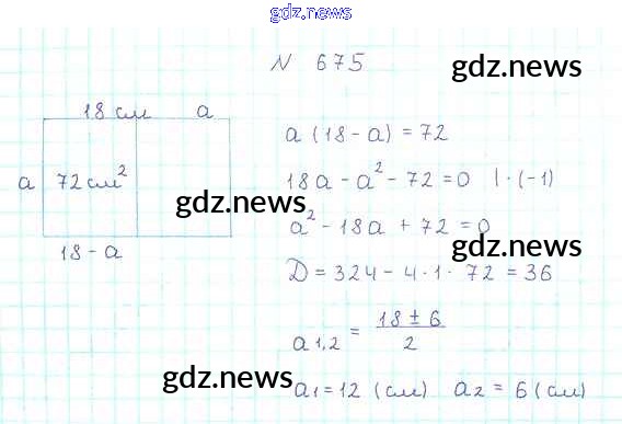Как эффективно готовиться к домашним заданиям по Алгебре за 8 класс: лучшие стратегии и советы на gdz.news. Здесь подготовлен Учебник Мерзляк, Полонский, Якир Алгоритм успеха - §20. Формула корней квадратного уравнения 675 и готовые ответы к ним. Сверяй домашку и получай отличные оценки!