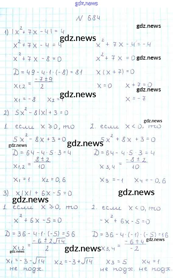 Как эффективно готовиться к домашним заданиям по Алгебре за 8 класс: лучшие стратегии и советы на gdz.news. Здесь подготовлен Учебник Мерзляк, Полонский, Якир Алгоритм успеха - §20. Формула корней квадратного уравнения 684 и готовые ответы к ним. Сверяй домашку и получай отличные оценки!