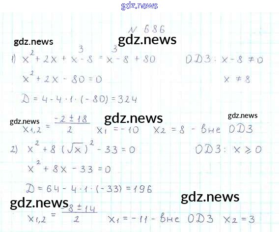Как эффективно готовиться к домашним заданиям по Алгебре за 8 класс: лучшие стратегии и советы на gdz.news. Здесь подготовлен Учебник Мерзляк, Полонский, Якир Алгоритм успеха - §20. Формула корней квадратного уравнения 686 и готовые ответы к ним. Сверяй домашку и получай отличные оценки!
