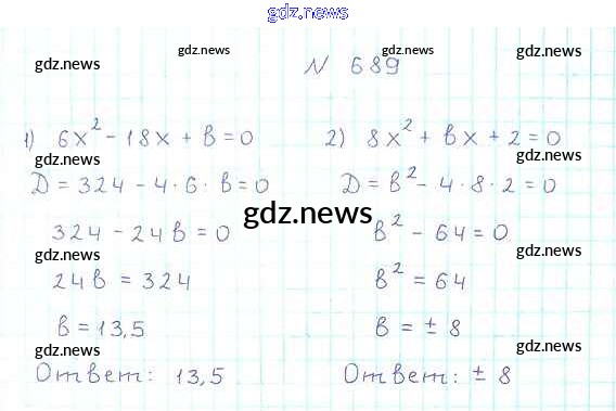 Как эффективно готовиться к домашним заданиям по Алгебре за 8 класс: лучшие стратегии и советы на gdz.news. Здесь подготовлен Учебник Мерзляк, Полонский, Якир Алгоритм успеха - §20. Формула корней квадратного уравнения 689 и готовые ответы к ним. Сверяй домашку и получай отличные оценки!
