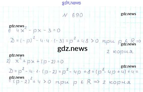 Как эффективно готовиться к домашним заданиям по Алгебре за 8 класс: лучшие стратегии и советы на gdz.news. Здесь подготовлен Учебник Мерзляк, Полонский, Якир Алгоритм успеха - §20. Формула корней квадратного уравнения 690 и готовые ответы к ним. Сверяй домашку и получай отличные оценки!