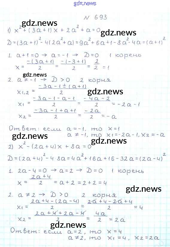 Как эффективно готовиться к домашним заданиям по Алгебре за 8 класс: лучшие стратегии и советы на gdz.news. Здесь подготовлен Учебник Мерзляк, Полонский, Якир Алгоритм успеха - §20. Формула корней квадратного уравнения 693 и готовые ответы к ним. Сверяй домашку и получай отличные оценки!