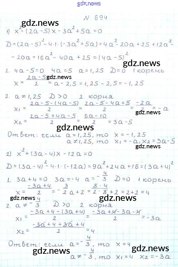 Как эффективно готовиться к домашним заданиям по Алгебре за 8 класс: лучшие стратегии и советы на gdz.news. Здесь подготовлен Учебник Мерзляк, Полонский, Якир Алгоритм успеха - §20. Формула корней квадратного уравнения 694 и готовые ответы к ним. Сверяй домашку и получай отличные оценки!