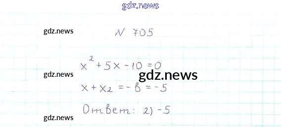 Как эффективно готовиться к домашним заданиям по Алгебре за 8 класс: лучшие стратегии и советы на gdz.news. Здесь подготовлен Учебник Мерзляк, Полонский, Якир Алгоритм успеха - §21. Теорема Виета 705 и готовые ответы к ним. Сверяй домашку и получай отличные оценки!