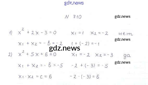 Как эффективно готовиться к домашним заданиям по Алгебре за 8 класс: лучшие стратегии и советы на gdz.news. Здесь подготовлен Учебник Мерзляк, Полонский, Якир Алгоритм успеха - §21. Теорема Виета 710 и готовые ответы к ним. Сверяй домашку и получай отличные оценки!