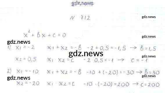 Как эффективно готовиться к домашним заданиям по Алгебре за 8 класс: лучшие стратегии и советы на gdz.news. Здесь подготовлен Учебник Мерзляк, Полонский, Якир Алгоритм успеха - §21. Теорема Виета 712 и готовые ответы к ним. Сверяй домашку и получай отличные оценки!