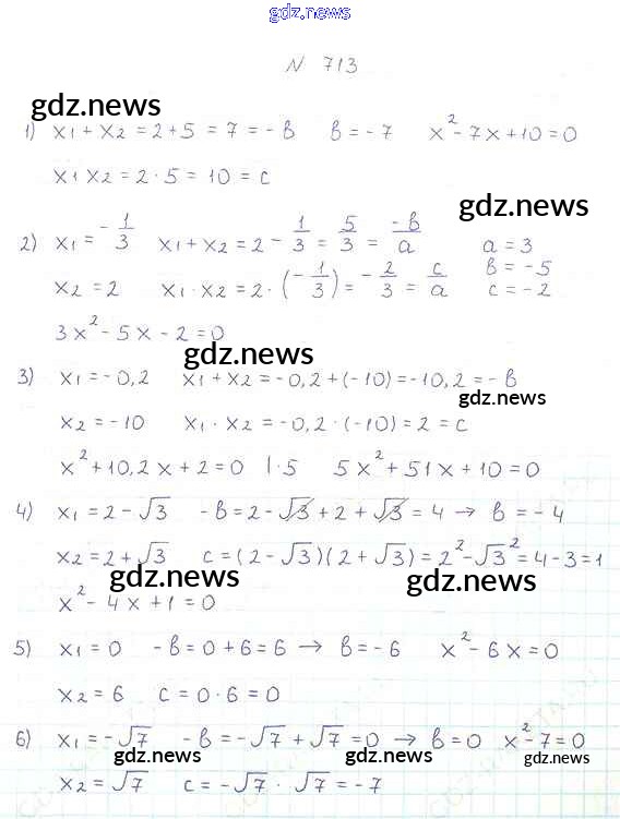 Как эффективно готовиться к домашним заданиям по Алгебре за 8 класс: лучшие стратегии и советы на gdz.news. Здесь подготовлен Учебник Мерзляк, Полонский, Якир Алгоритм успеха - §21. Теорема Виета 713 и готовые ответы к ним. Сверяй домашку и получай отличные оценки!