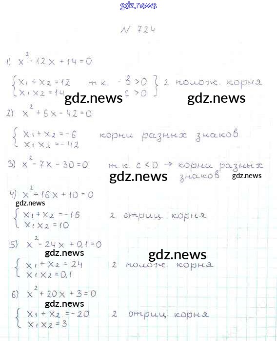 Как эффективно готовиться к домашним заданиям по Алгебре за 8 класс: лучшие стратегии и советы на gdz.news. Здесь подготовлен Учебник Мерзляк, Полонский, Якир Алгоритм успеха - §21. Теорема Виета 724 и готовые ответы к ним. Сверяй домашку и получай отличные оценки!
