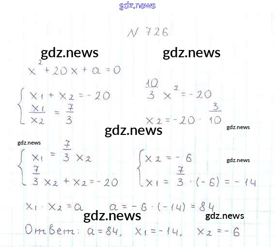 Как эффективно готовиться к домашним заданиям по Алгебре за 8 класс: лучшие стратегии и советы на gdz.news. Здесь подготовлен Учебник Мерзляк, Полонский, Якир Алгоритм успеха - §21. Теорема Виета 726 и готовые ответы к ним. Сверяй домашку и получай отличные оценки!