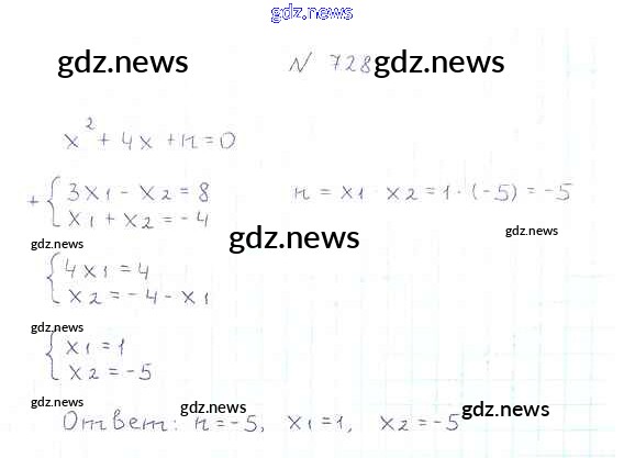 Как эффективно готовиться к домашним заданиям по Алгебре за 8 класс: лучшие стратегии и советы на gdz.news. Здесь подготовлен Учебник Мерзляк, Полонский, Якир Алгоритм успеха - §21. Теорема Виета 728 и готовые ответы к ним. Сверяй домашку и получай отличные оценки!