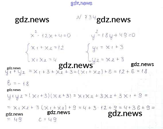 Как эффективно готовиться к домашним заданиям по Алгебре за 8 класс: лучшие стратегии и советы на gdz.news. Здесь подготовлен Учебник Мерзляк, Полонский, Якир Алгоритм успеха - §21. Теорема Виета 734 и готовые ответы к ним. Сверяй домашку и получай отличные оценки!