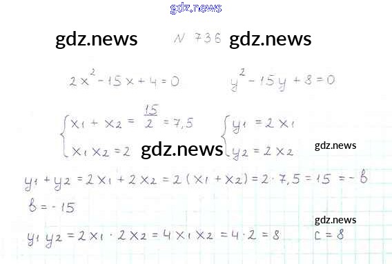 Как эффективно готовиться к домашним заданиям по Алгебре за 8 класс: лучшие стратегии и советы на gdz.news. Здесь подготовлен Учебник Мерзляк, Полонский, Якир Алгоритм успеха - §21. Теорема Виета 736 и готовые ответы к ним. Сверяй домашку и получай отличные оценки!