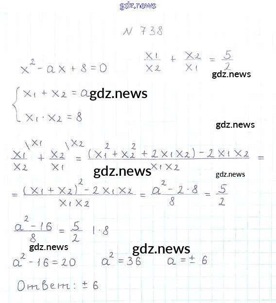 Как эффективно готовиться к домашним заданиям по Алгебре за 8 класс: лучшие стратегии и советы на gdz.news. Здесь подготовлен Учебник Мерзляк, Полонский, Якир Алгоритм успеха - §21. Теорема Виета 738 и готовые ответы к ним. Сверяй домашку и получай отличные оценки!