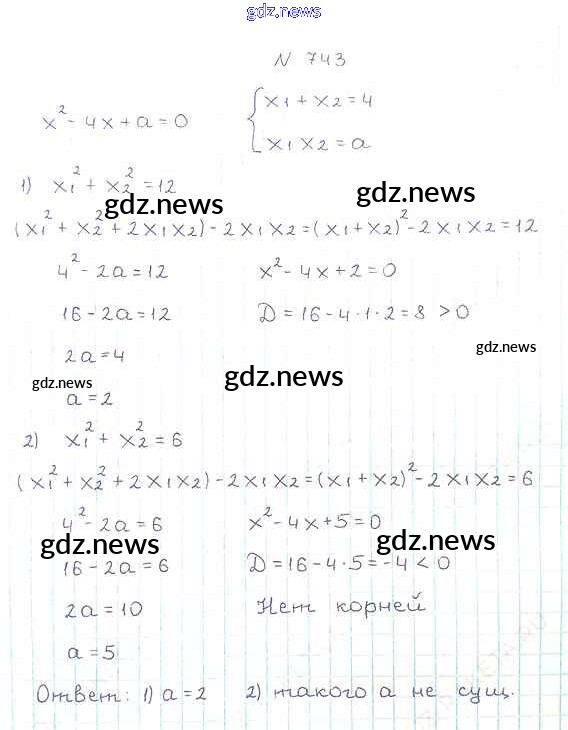Как эффективно готовиться к домашним заданиям по Алгебре за 8 класс: лучшие стратегии и советы на gdz.news. Здесь подготовлен Учебник Мерзляк, Полонский, Якир Алгоритм успеха - §21. Теорема Виета 743 и готовые ответы к ним. Сверяй домашку и получай отличные оценки!
