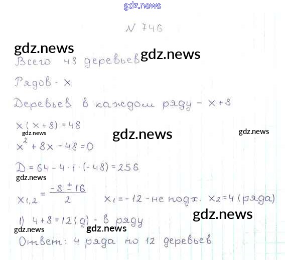Как эффективно готовиться к домашним заданиям по Алгебре за 8 класс: лучшие стратегии и советы на gdz.news. Здесь подготовлен Учебник Мерзляк, Полонский, Якир Алгоритм успеха - §21. Теорема Виета 746 и готовые ответы к ним. Сверяй домашку и получай отличные оценки!