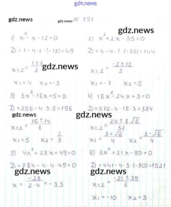Как эффективно готовиться к домашним заданиям по Алгебре за 8 класс: лучшие стратегии и советы на gdz.news. Здесь подготовлен Учебник Мерзляк, Полонский, Якир Алгоритм успеха - §22. Квадратный трёхчлен 751 и готовые ответы к ним. Сверяй домашку и получай отличные оценки!