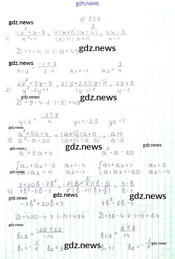 Как эффективно готовиться к домашним заданиям по Алгебре за 8 класс: лучшие стратегии и советы на gdz.news. Здесь подготовлен Учебник Мерзляк, Полонский, Якир Алгоритм успеха - §22. Квадратный трёхчлен 758 и готовые ответы к ним. Сверяй домашку и получай отличные оценки!