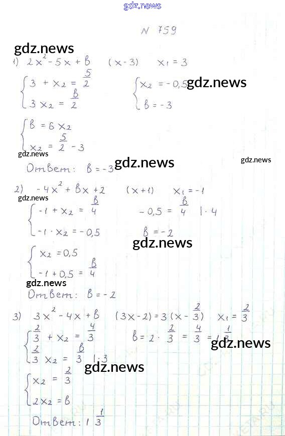 Как эффективно готовиться к домашним заданиям по Алгебре за 8 класс: лучшие стратегии и советы на gdz.news. Здесь подготовлен Учебник Мерзляк, Полонский, Якир Алгоритм успеха - §22. Квадратный трёхчлен 759 и готовые ответы к ним. Сверяй домашку и получай отличные оценки!