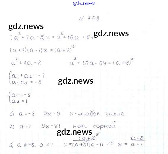 Как эффективно готовиться к домашним заданиям по Алгебре за 8 класс: лучшие стратегии и советы на gdz.news. Здесь подготовлен Учебник Мерзляк, Полонский, Якир Алгоритм успеха - §22. Квадратный трёхчлен 768 и готовые ответы к ним. Сверяй домашку и получай отличные оценки!