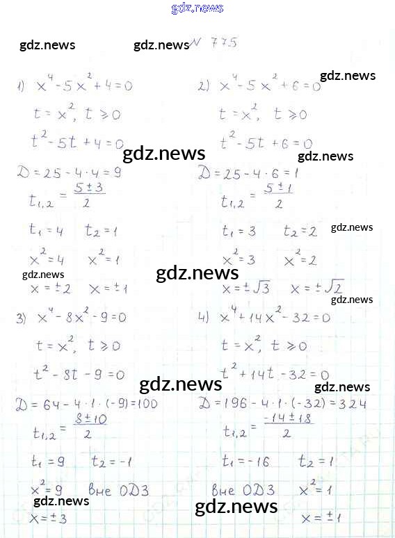 Как эффективно готовиться к домашним заданиям по Алгебре за 8 класс: лучшие стратегии и советы на gdz.news. Здесь подготовлен Учебник Мерзляк, Полонский, Якир Алгоритм успеха - §23. Решение уравнений, сводящихся к квадратным уравнениям 775 и готовые ответы к ним. Сверяй домашку и получай отличные оценки!