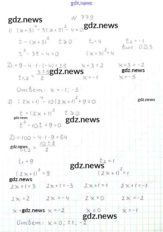 Как эффективно готовиться к домашним заданиям по Алгебре за 8 класс: лучшие стратегии и советы на gdz.news. Здесь подготовлен Учебник Мерзляк, Полонский, Якир Алгоритм успеха - §23. Решение уравнений, сводящихся к квадратным уравнениям 779 и готовые ответы к ним. Сверяй домашку и получай отличные оценки!
