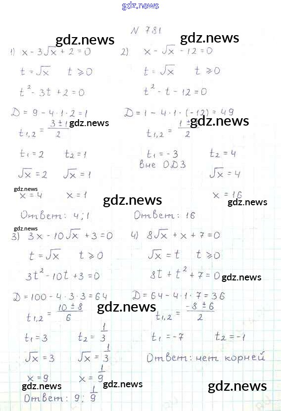 Как эффективно готовиться к домашним заданиям по Алгебре за 8 класс: лучшие стратегии и советы на gdz.news. Здесь подготовлен Учебник Мерзляк, Полонский, Якир Алгоритм успеха - §23. Решение уравнений, сводящихся к квадратным уравнениям 781 и готовые ответы к ним. Сверяй домашку и получай отличные оценки!