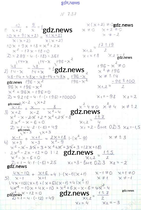 ГДЗ по Алгебре за 8 класс Мерзляк, Полонский Учебник Алгоритм успеха - §23. Решение уравнений, сводящихся к квадратным уравнениям 787
