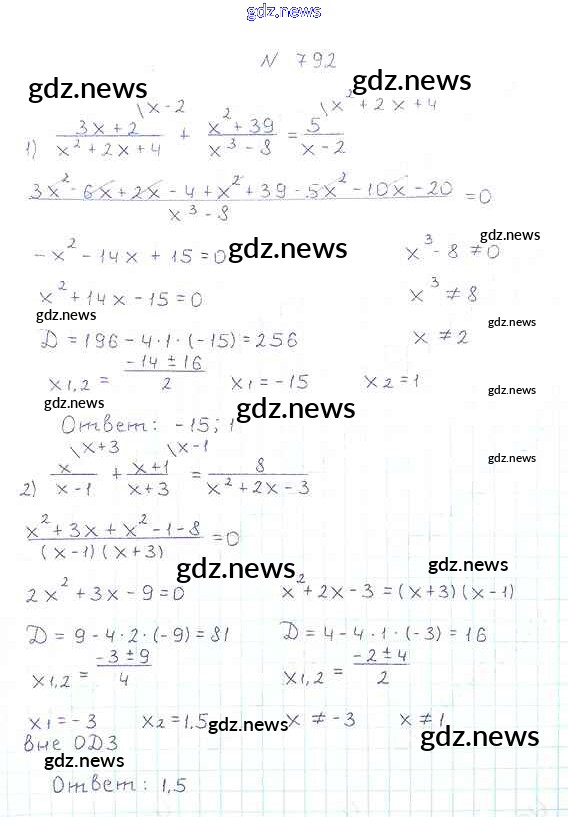 Как эффективно готовиться к домашним заданиям по Алгебре за 8 класс: лучшие стратегии и советы на gdz.news. Здесь подготовлен Учебник Мерзляк, Полонский, Якир Алгоритм успеха - §23. Решение уравнений, сводящихся к квадратным уравнениям 792 и готовые ответы к ним. Сверяй домашку и получай отличные оценки!