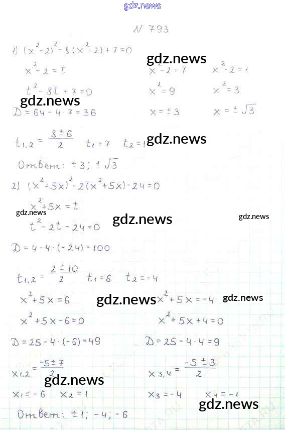 Как эффективно готовиться к домашним заданиям по Алгебре за 8 класс: лучшие стратегии и советы на gdz.news. Здесь подготовлен Учебник Мерзляк, Полонский, Якир Алгоритм успеха - §23. Решение уравнений, сводящихся к квадратным уравнениям 793 и готовые ответы к ним. Сверяй домашку и получай отличные оценки!