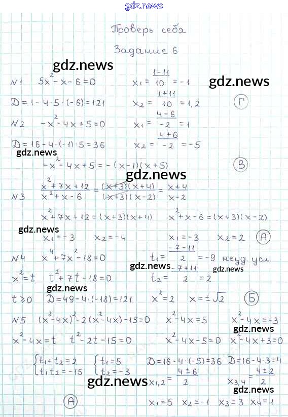 Как эффективно готовиться к домашним заданиям по Алгебре за 8 класс: лучшие стратегии и советы на gdz.news. Здесь подготовлен Учебник Мерзляк, Полонский, Якир Алгоритм успеха - Проверь себя №6 1 и готовые ответы к ним. Сверяй домашку и получай отличные оценки!