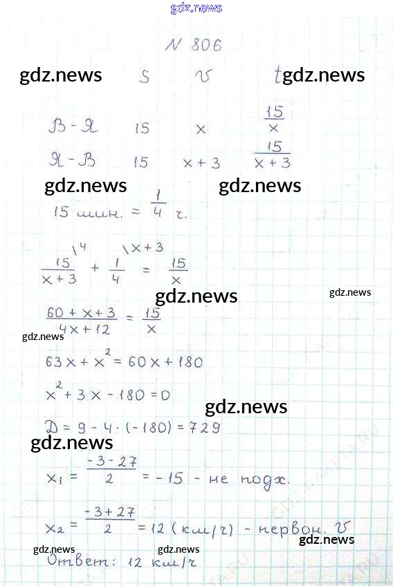 Как эффективно готовиться к домашним заданиям по Алгебре за 8 класс: лучшие стратегии и советы на gdz.news. Здесь подготовлен Учебник Мерзляк, Полонский, Якир Алгоритм успеха - §24. Рациональные уравнения как математические модели реальных ситуаций 806 и готовые ответы к ним. Сверяй домашку и получай отличные оценки!