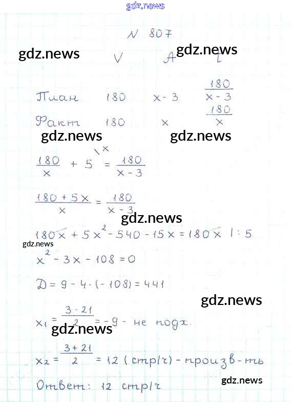 Как эффективно готовиться к домашним заданиям по Алгебре за 8 класс: лучшие стратегии и советы на gdz.news. Здесь подготовлен Учебник Мерзляк, Полонский, Якир Алгоритм успеха - §24. Рациональные уравнения как математические модели реальных ситуаций 807 и готовые ответы к ним. Сверяй домашку и получай отличные оценки!