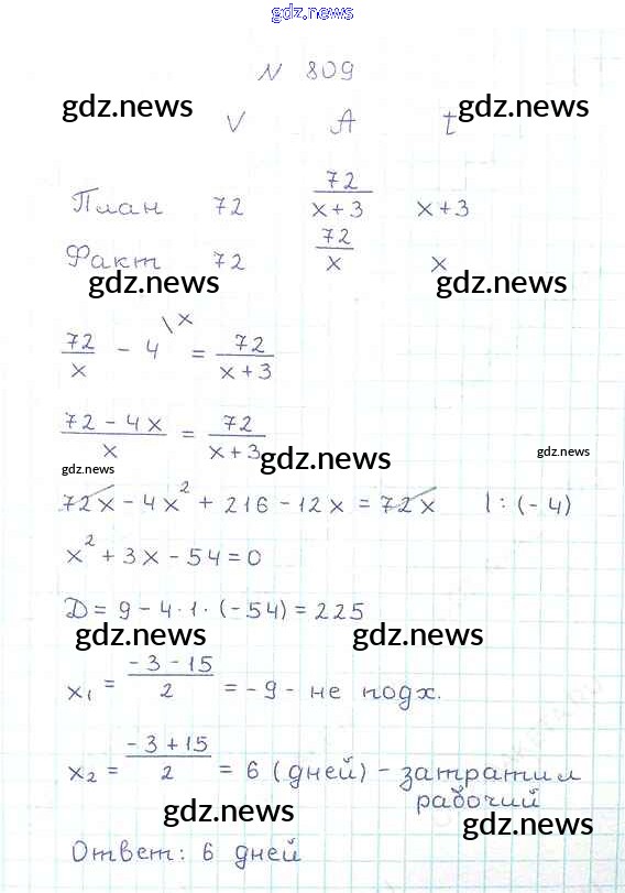 Как эффективно готовиться к домашним заданиям по Алгебре за 8 класс: лучшие стратегии и советы на gdz.news. Здесь подготовлен Учебник Мерзляк, Полонский, Якир Алгоритм успеха - §24. Рациональные уравнения как математические модели реальных ситуаций 809 и готовые ответы к ним. Сверяй домашку и получай отличные оценки!