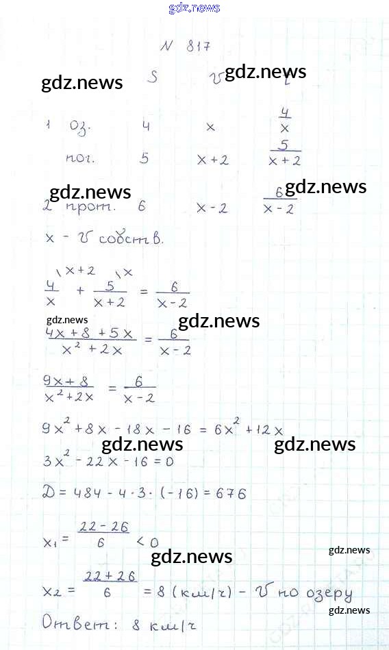 Как эффективно готовиться к домашним заданиям по Алгебре за 8 класс: лучшие стратегии и советы на gdz.news. Здесь подготовлен Учебник Мерзляк, Полонский, Якир Алгоритм успеха - §24. Рациональные уравнения как математические модели реальных ситуаций 817 и готовые ответы к ним. Сверяй домашку и получай отличные оценки!