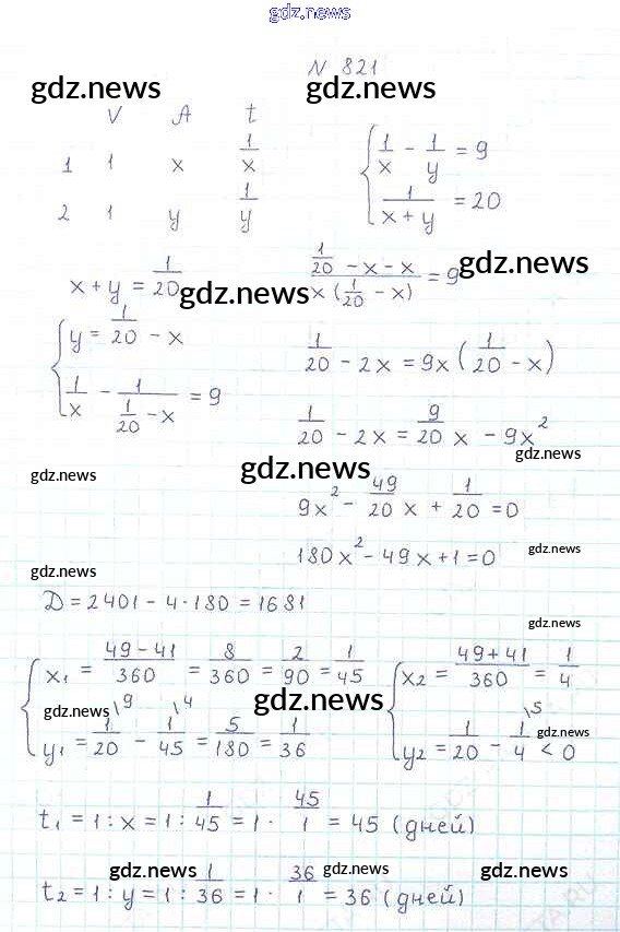 Как эффективно готовиться к домашним заданиям по Алгебре за 8 класс: лучшие стратегии и советы на gdz.news. Здесь подготовлен Учебник Мерзляк, Полонский, Якир Алгоритм успеха - §24. Рациональные уравнения как математические модели реальных ситуаций 821 и готовые ответы к ним. Сверяй домашку и получай отличные оценки!
